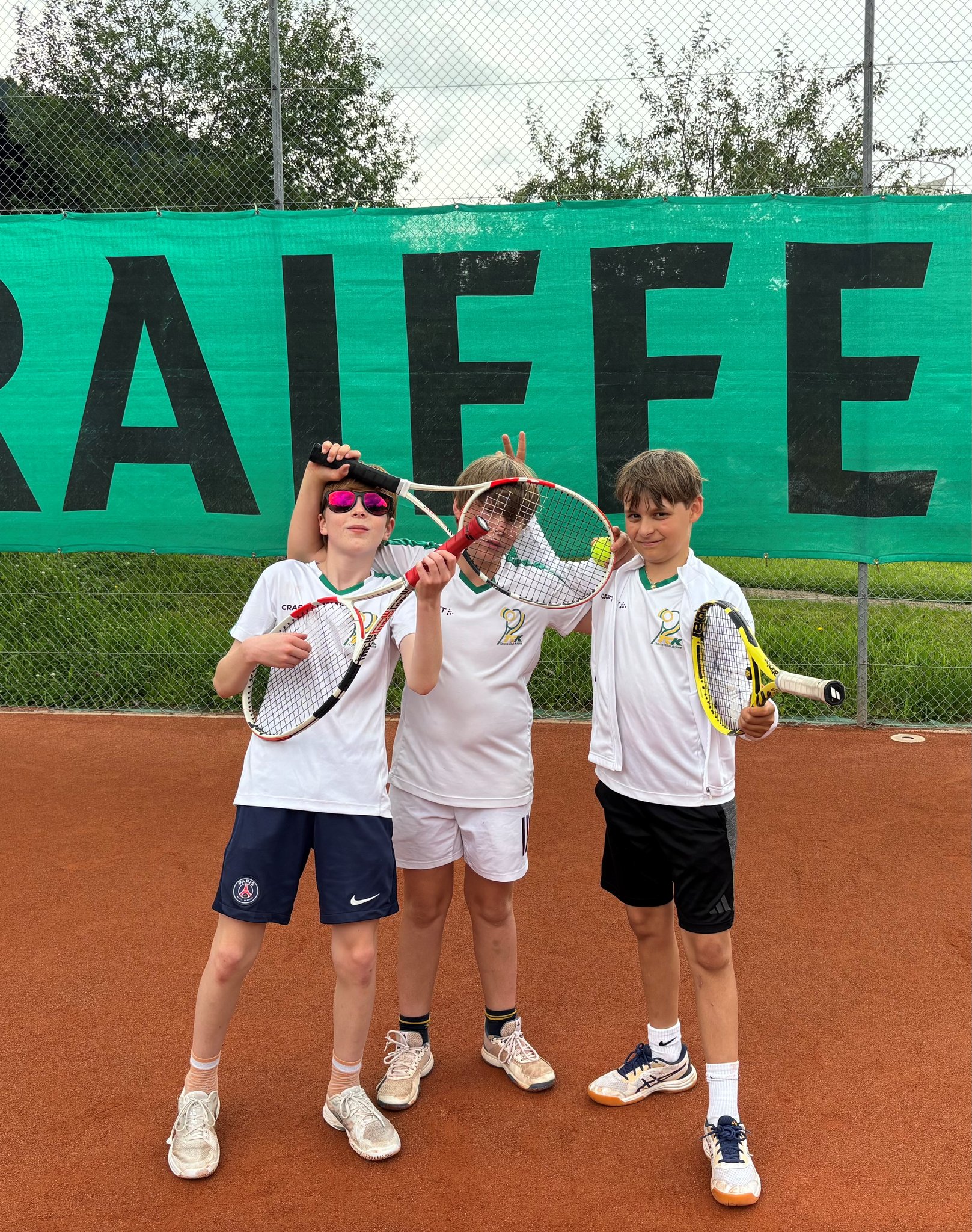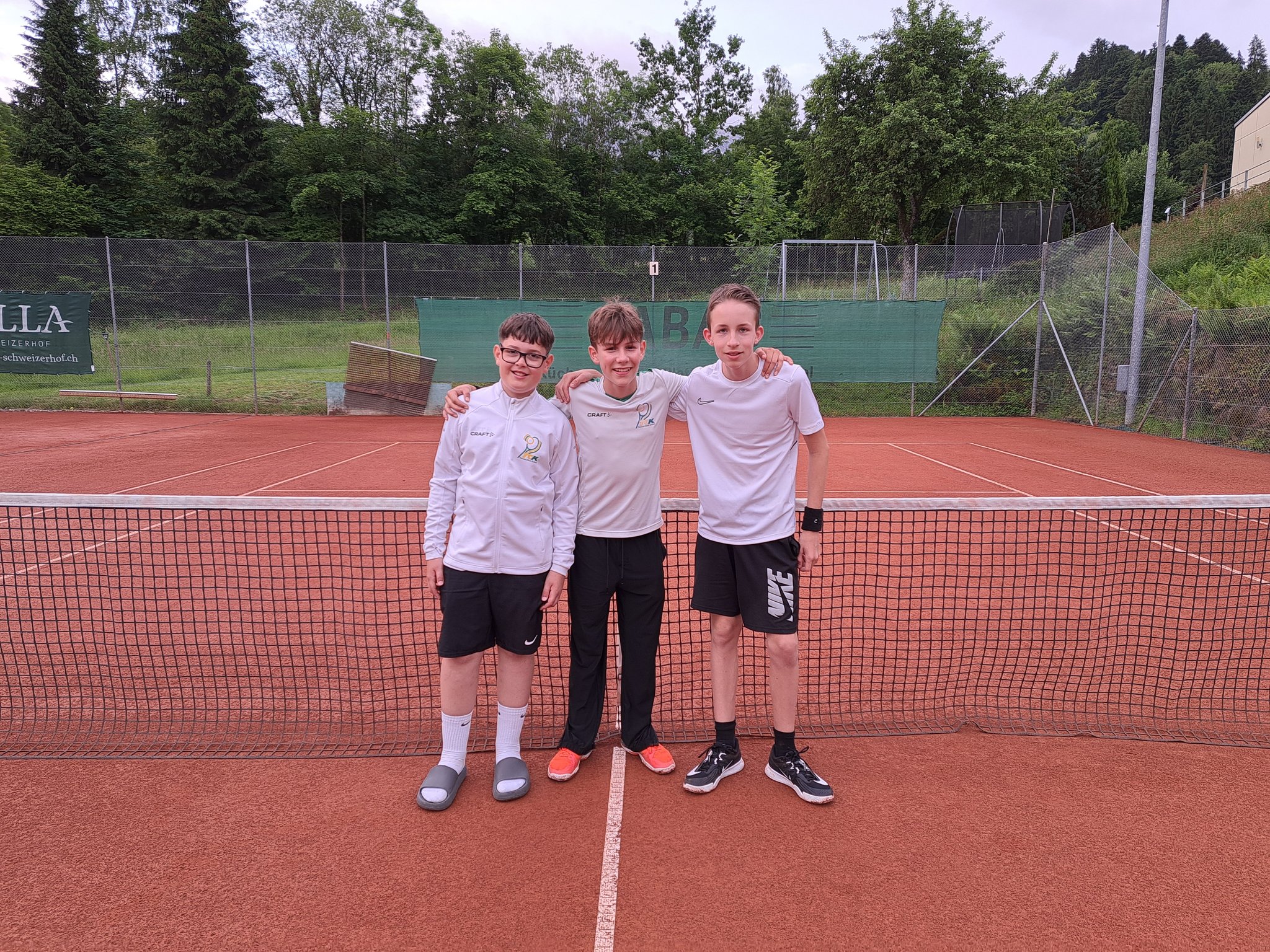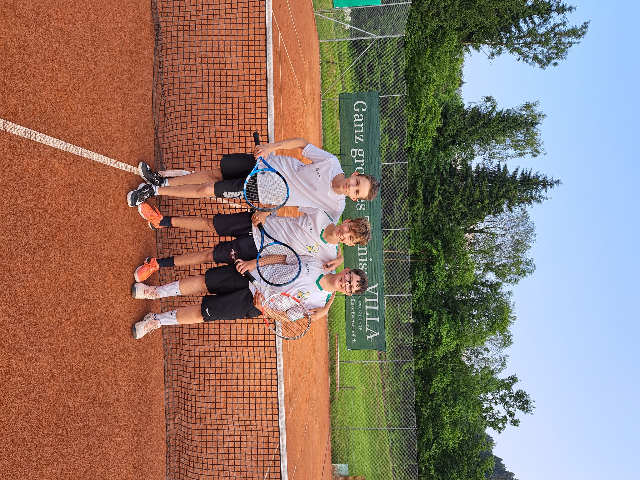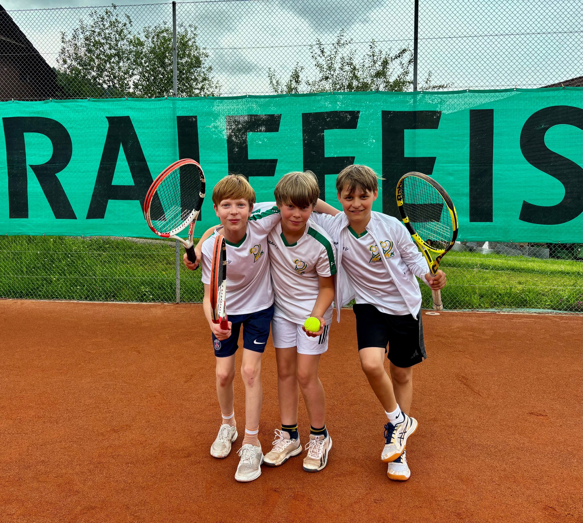Bei der 1. Begegnung zu Hause hatten wir einige Regenpausen zu meistern, doch nach dem feinen Nachtessen (Schnitzel und Pommes) in unserem Club, haben die Jungs dann im Champions- Tiebreak 12:10